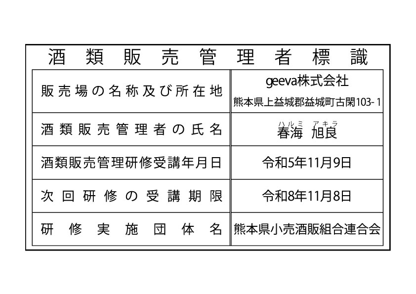 酒販免許番号:熊本西酒指第78号